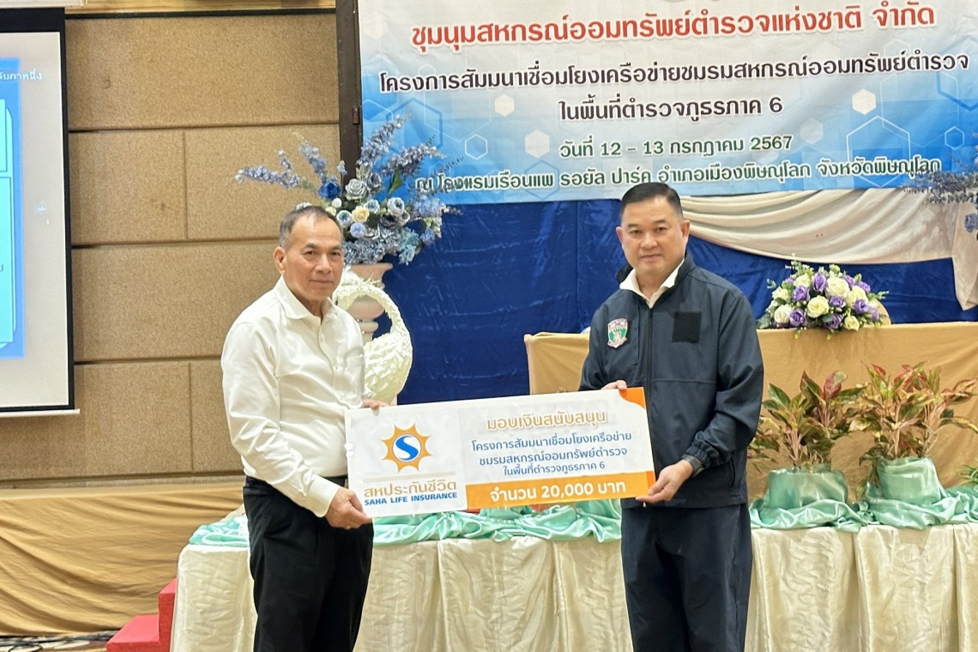 เมื่อวันที่ 12 กรกฎาคม 2567 บริษัท สหประกันชีวิต จำกัด (มหาชน) นำโดย พลตำรวจเอก นิพจน์ วีระสุนทร ประธานกรรมการบริษัทฯ พร้อมด้วย พลตำรวจโท สมเดช ขาวขำ ประธานกรรมการบริหาร และ นางอาภา ไหลนานานุกูล รองกรรมการผู้จัดการ สายงานบริหาร เข้าร่วมโครงการสัมมนาเชื่อมโยงเครือข่ายชมรม สหกรณ์ออมทรัพย์ตำรวจ ในพื้นที่ ตำรวจภูธรภาค 6 พร้อมสนับสนุนเงิน จำนวน 20,000 บาท โดยมี พลตำรวจตรี สารนัย คงเมือง ประธานสหกรณ์ออมทรัพย์ตำรวจภูธร จังหวัดเพชรบูรณ์ จำกัด เป็นผู้แทนรับมอบ ณ โรงแรมเรือนแพ รอยัล ปาร์ค อำเภอเมืองพิษณุโลก จังหวัดพิษณุโลก
