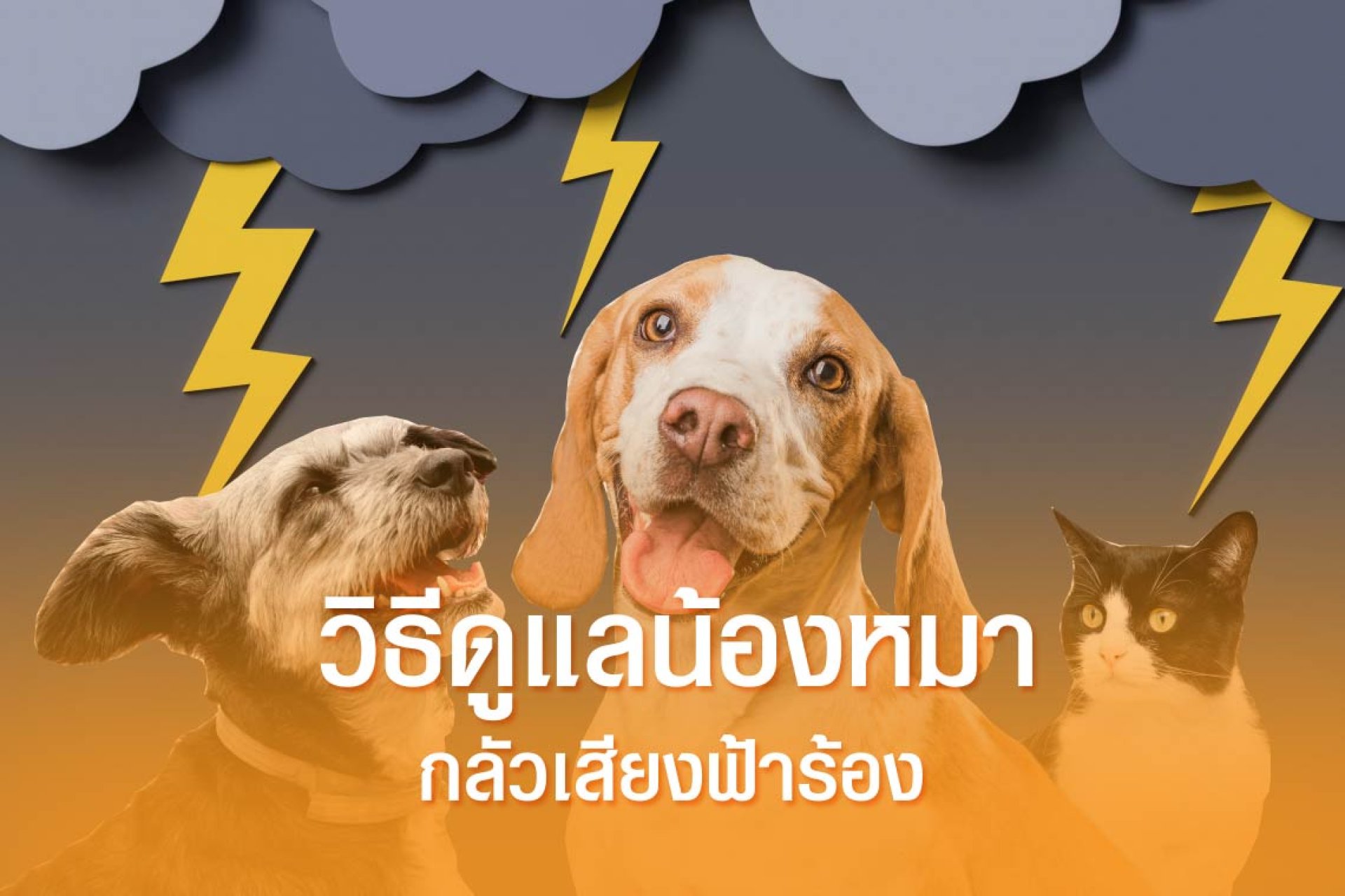 ช่วงหน้าฝนแบบนี้ทุกคนที่มีสัตว์เลี้ยงโดยเฉพาะเพื่อนรักสี่ขาอย่างน้องหมาน้องแมว ต่างต้องพบเจอกับปัญหาการกลัวเสียงฟ้าร้องฟ้าผ่าของพวกเขา ซึ่งหากขาดการเฝ้าระวังและดูแลอย่างใกล้ชิดอาจนำไปสู่การมีพฤติกรรมที่เปลี่ยนไปกับเจ้าของและการบาดเจ็บโดยไม่คาดคิด