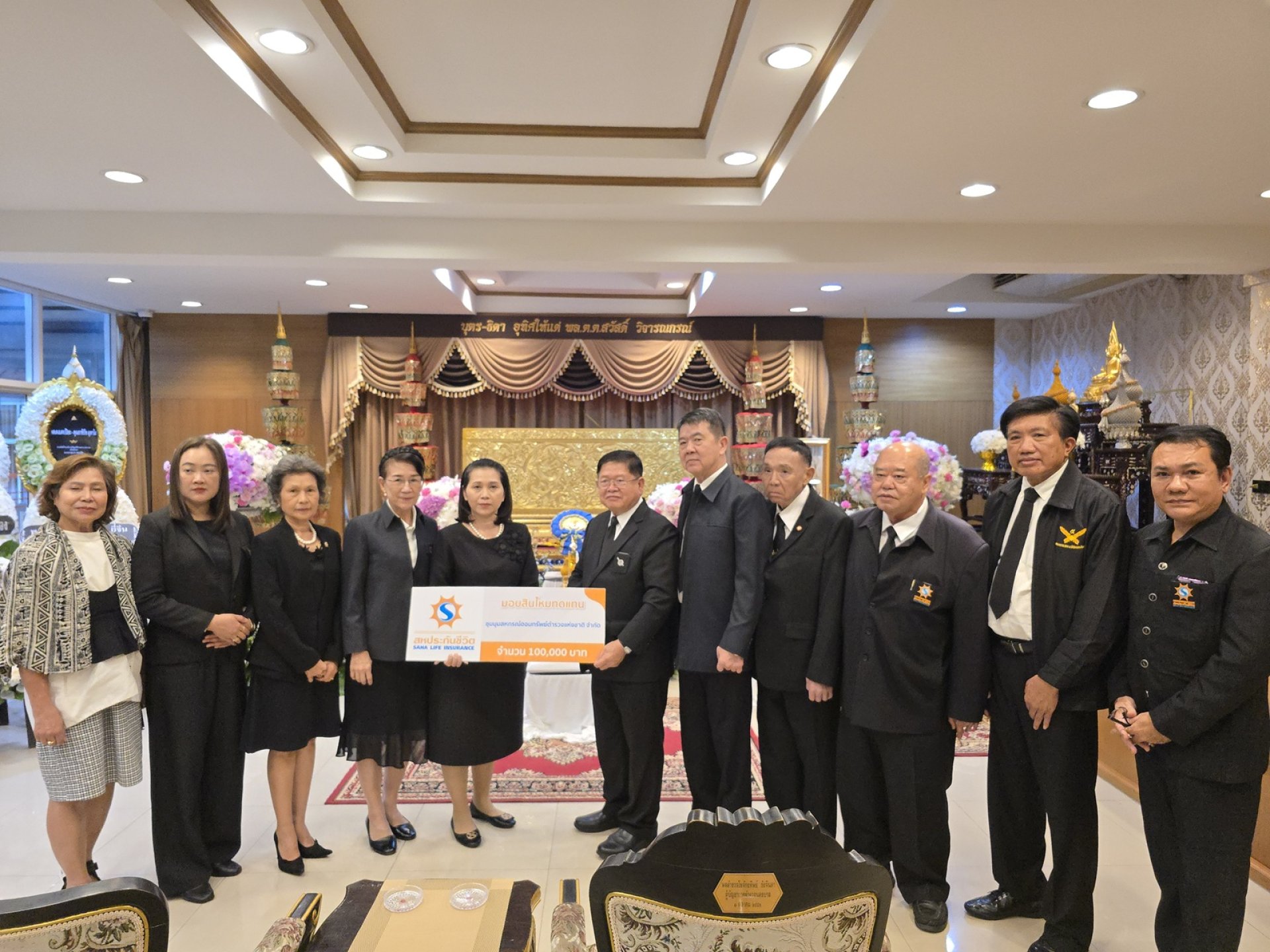 พร้อมกันนี้ บริษัทฯ ยังได้มอบ พวงหรีดในนามของบริษัท สหประกันชีวิต จำกัด (มหาชน) เพื่อแสดงความอาลัยและร่วมไว้อาลัยต่อการจากไปของท่านด้วย